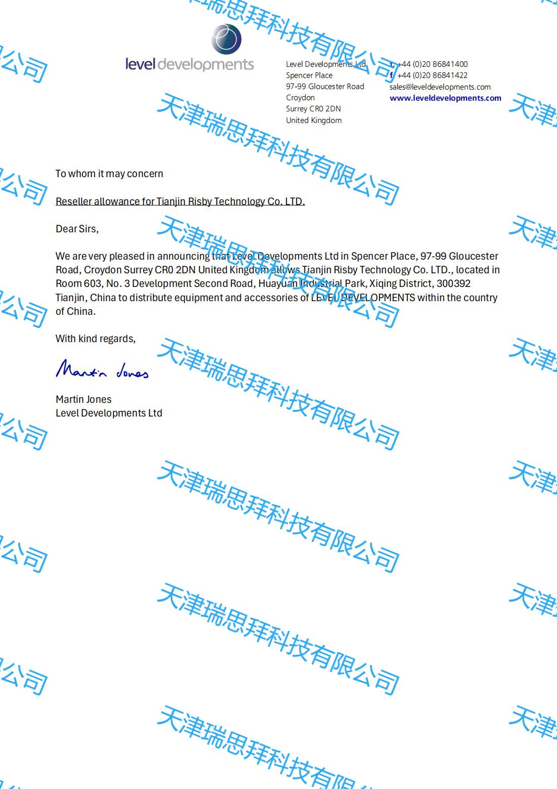 天津瑞思拜科技有限公司是Level Developments的授權(quán)代理商,對(duì)Level Developments的全部產(chǎn)品有銷售權(quán)限,如有需要請(qǐng)聯(lián)系。